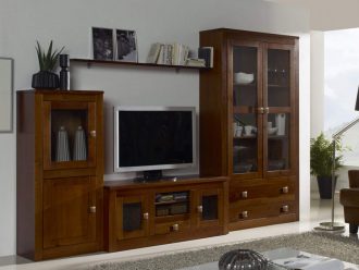Comedor de madera maciza de pino en color nogal. (color unico nogal).