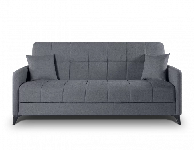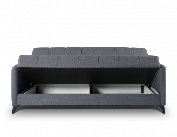 Dispone de un sistema de apertura Click-Clack fácil de accionar, y cuenta con doble arcón interior para almacenamiento. Incluye 2 cojines decorativos y patas de ABS en color negro.