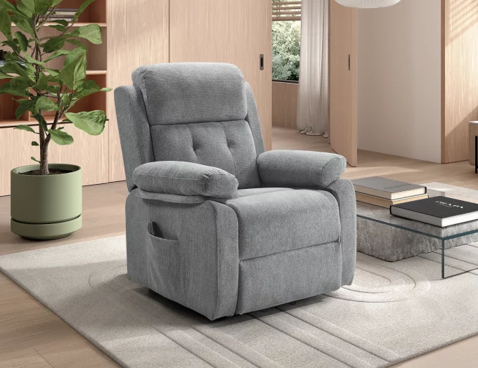El sillón Mónaco está diseñado para ofrecer un máximo confort y funcionalidad. Su sistema de 2 motores permite ajustar el respaldo y el reposapiés de forma independiente, adaptándose a las necesidades de cada usuario. Fabricado con estructura de madera y contrachapado, tapizado en tela Aragón antimanchas, y equipado con asientos HR de 28kg con muelles ensacados, garantiza durabilidad y comodidad. Incluye la función Power-Lift para facilitar la incorporación, siendo ideal para personas con movilidad reducida. Resistencia máxima de 130kg.