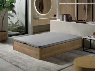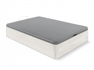 El canapé Zenit destaca por su estructura robusta y una excelente capacidad de almacenamiento, ideal para optimizar el espacio en dormitorios. Está fabricado con arcón de madera de 22 mm de grosor y acabado en melamina texturada, lo que aporta resistencia y un aspecto moderno.