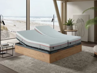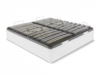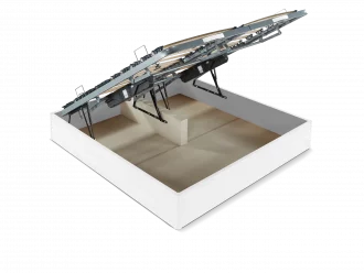 Su tapa está reforzada con aglomerado de 8 mm, tapizada en tejido 3D beige transpirable e incorpora aireadores internos para una correcta ventilación del equipo de descanso. La estructura metálica de la tapa está fabricada en tubo acerado de 30×30 mm, garantizando durabilidad y firmeza.