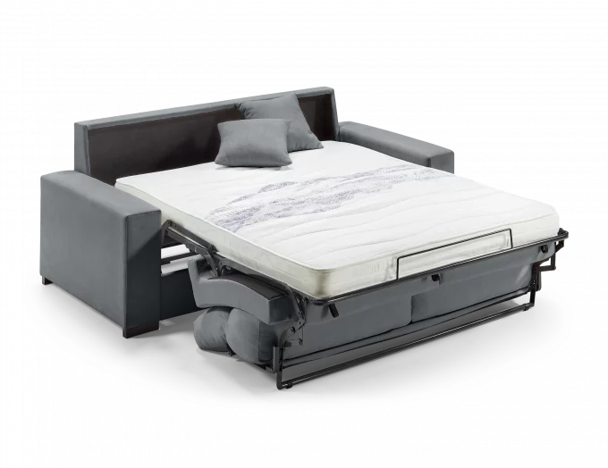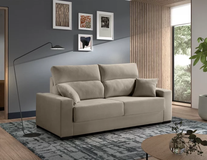 (Español) El sofá-cama Hydra destaca por su sistema de apertura italiano, ideal para quienes buscan funcionalidad sin renunciar al diseño. Su estructura combina acero y madera de pino macizo, garantizando resistencia y estabilidad. El tapizado en tela NASERA Easy Clean facilita su mantenimiento diario.